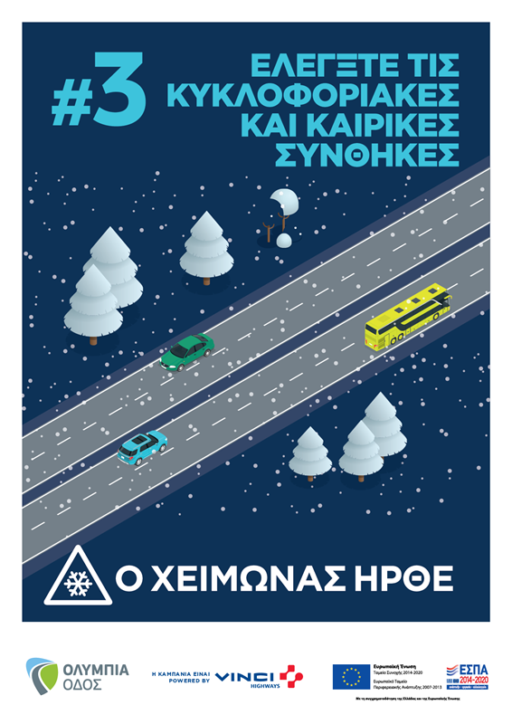 Concurrently, Olympia Odos is implementing an information campaign designed to provide motorists with guidance on winter driving safety. During this period, it is imperative to implement additional safety measures, as engine failures are more prevalent, vehicle fluids are susceptible to freezing, and vehicle tires do not adapt as readily to changing driving conditions. To assist drivers in such cases, our teams stand by to intervene immediately.