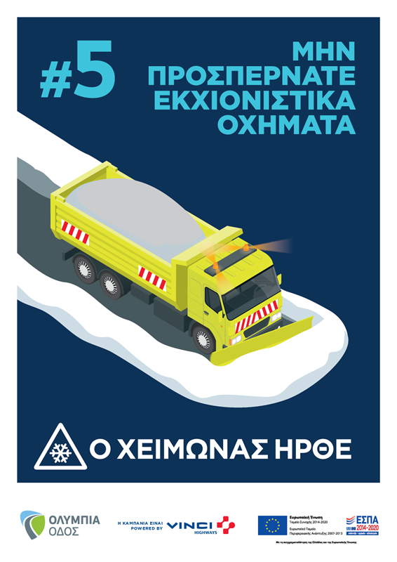 With the start of the winter season, Olympia Odos is activating its winter operations program. The operational bases at five (5) locations on the motorway are on full alert, ready to face the significant challenges of winter, while the motorway operation teams are conducting winter readiness exercises. The winter fleet, which includes snow plows and salt spreaders, has been prepared for the snowfall season. Concurrently, Olympia Odos is implementing a campaign to raise awareness among drivers about the necessary preparations they can make to their vehicles.